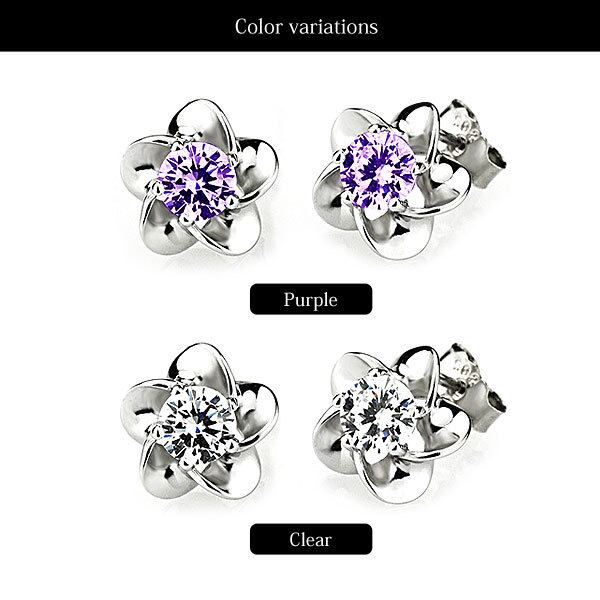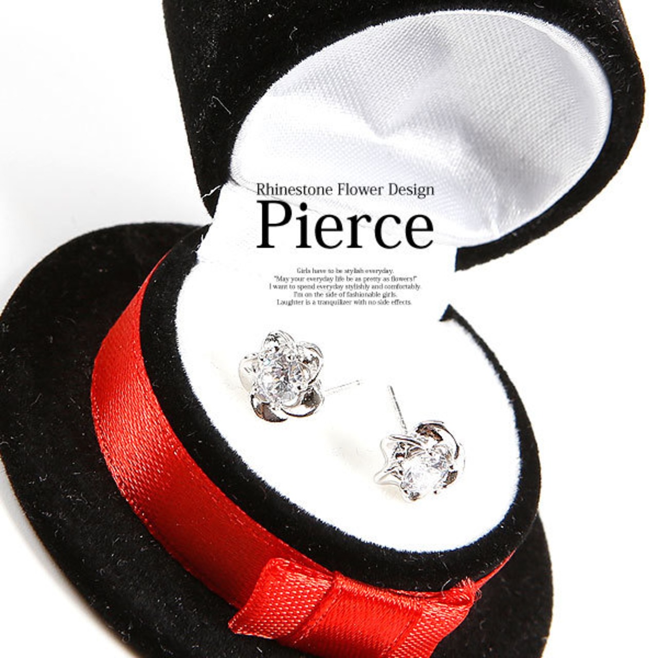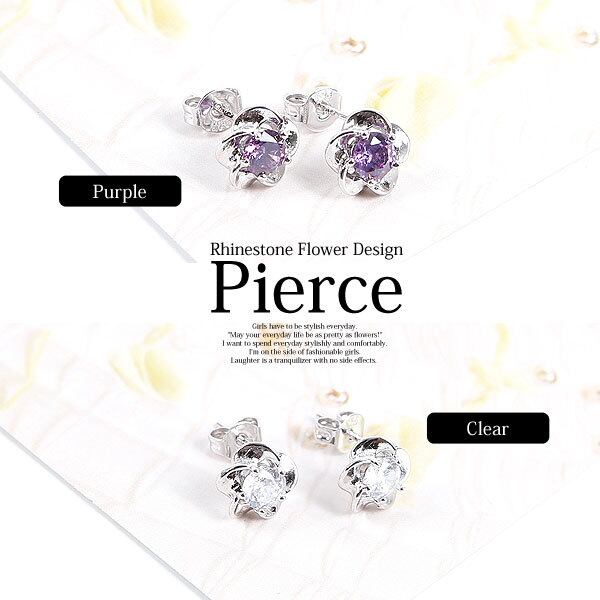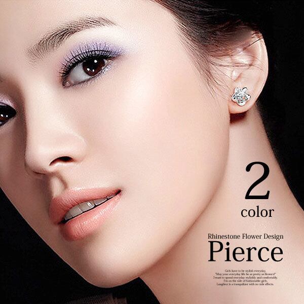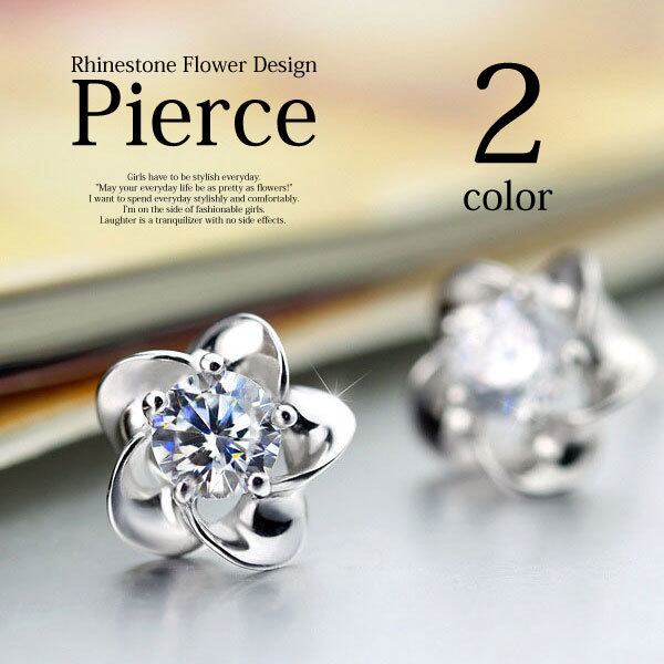 ★5枚の花弁の真ん中に中にキラキラのラインストーンをはめ込んだ、正統派のピアスです。